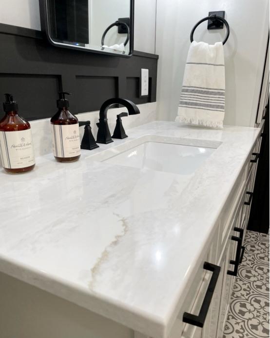 Natural stone products will exhibit features and traits that are not considered defects such as variation in the surface finish, pattern, and thickness. Pits, fissures and other textures may or may not be present throughout your chosen slab materials.